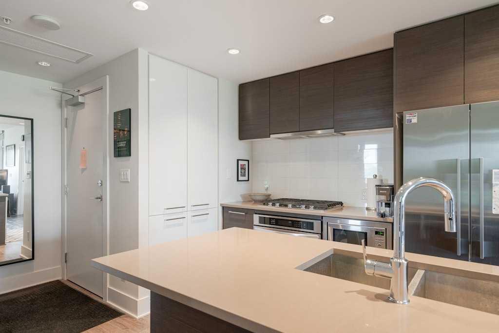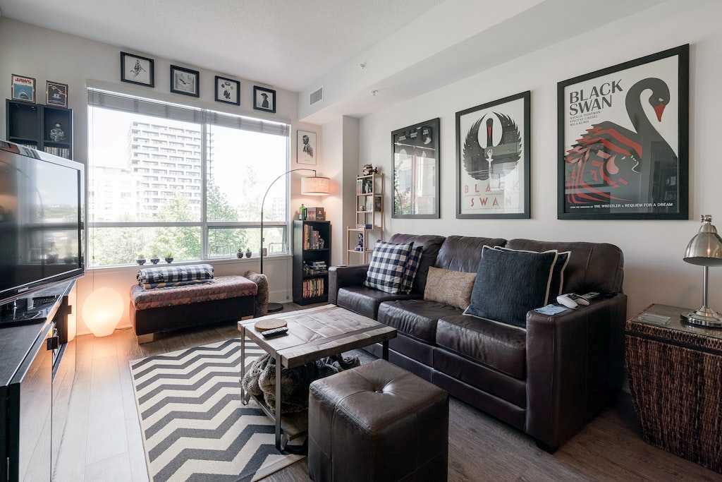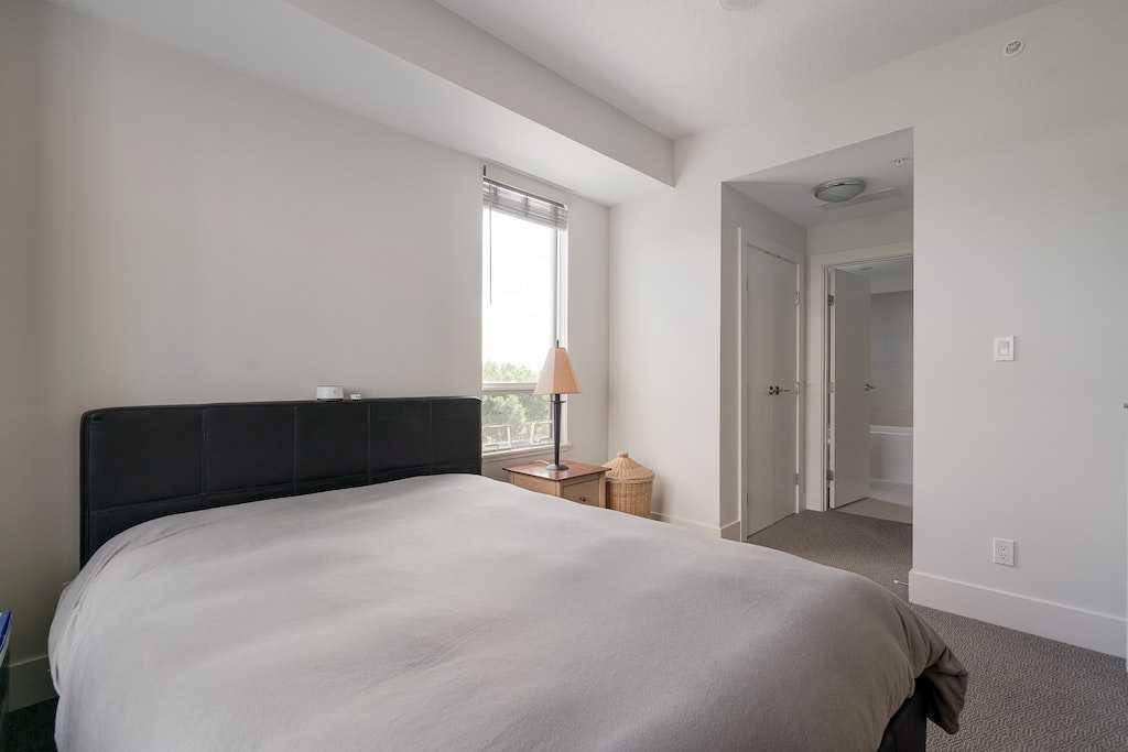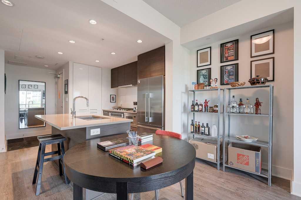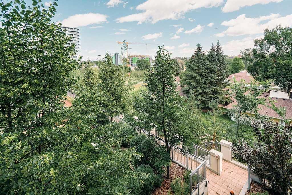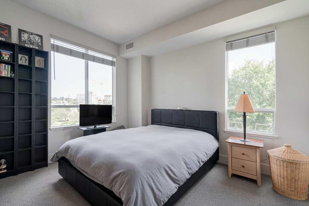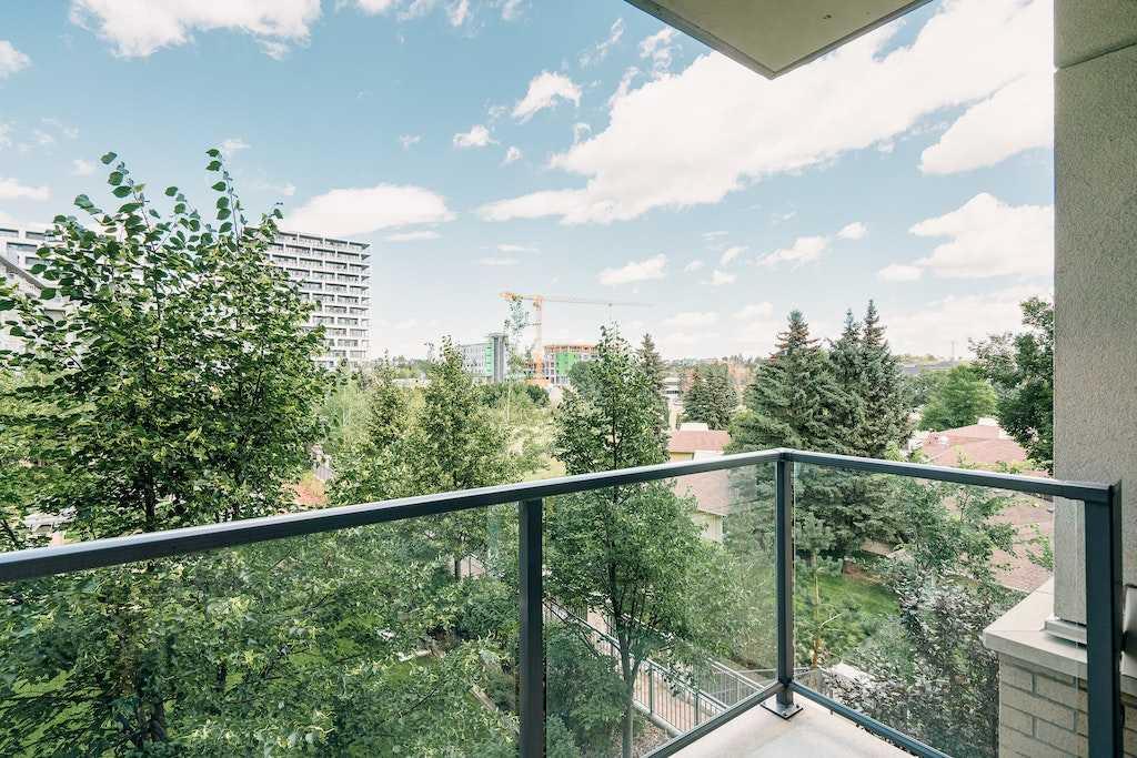 This trendy and enviable corner unit condo is ready to move in, located in the outstanding neighbourhood of Bridgeland! Illuminated in natural light, this unit boasts a stunning contemporary design with rich laminate flooring, high ceilings, neutral paint palette and wide open concept floor plan! Overlooking the living and dining spaces, the kitchen boasts premium stainless-steel appliances including a gas cooktop, that perfectly offsets sleek modern cabinetry, a substantial centre island with breakfast bar, large format tile backsplash and quartz countertops. The primary bedroom is spacious and boasts a walk-through closet and a modern ensuite bath with a glass enclosed corner shower, soaking tub, modern fixtures and matching cabinetry as well as a cheater door, so the bathroom can also be accessed by the main living areas. The generous second bedroom awaits, a multi functional space with built-ins, should you have company that would like to stay over or you prefer to have a separate at home office. Enjoy a glass of wine, or an alfresco dinner for two on the north facing balcony, the perfect place to wind down after a long day. Upgraded blinds, upgraded carpet, a separate storage locker and titled underground parking comes paired with an exceptional pet friendly building that includes plenty of amenities: fitness centre, social room, guest suite, garden plots, outdoor BBQs and a dog wash station. This incredible location is a short bike ride (or within walking distance) to downtown, and the many amenities of this popular community, shopping, restaurants, bakeries and ice cream shops, Murdoch and McDougall Parks, Bridgeland Riverside off leash areas, Tennis Courts, and so much more!